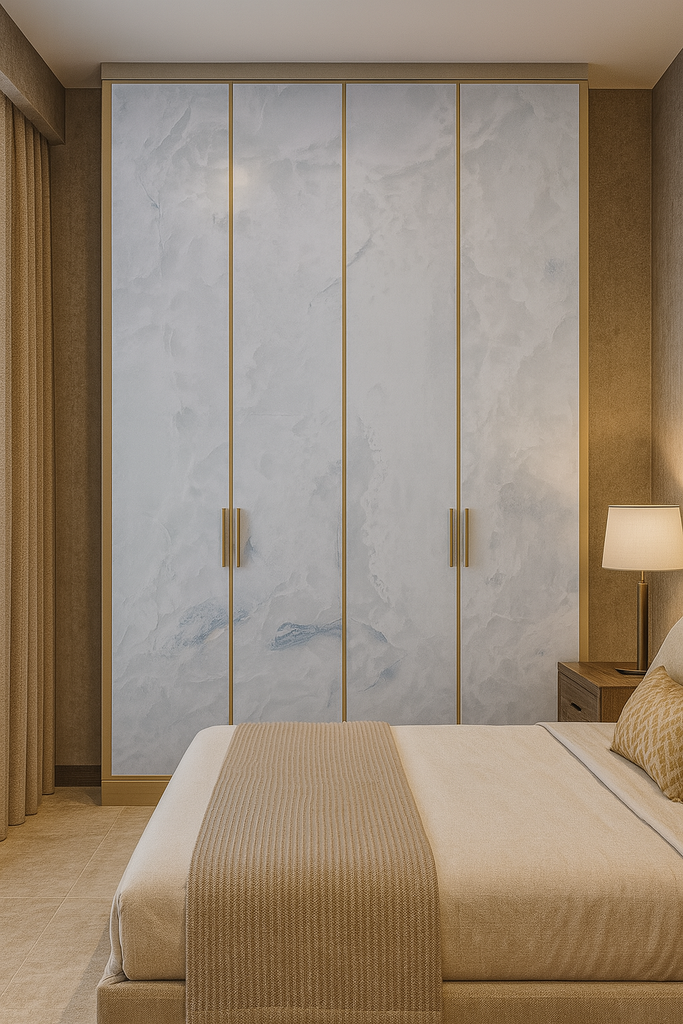 Arctic Onyx Laminate applied on plywood using adhesive including cutting, pasting and finishing work ensuring neat alignment and durable interior surface installation.. |