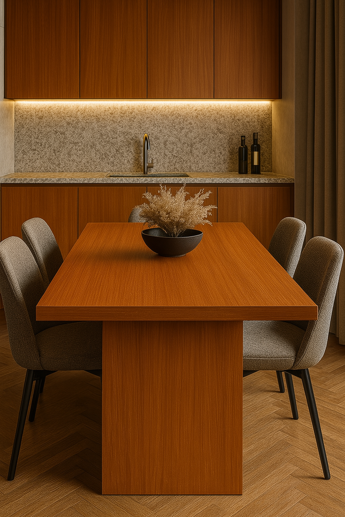 Autumn Oak Autumn Oak brings timeless warmth with its rich golden brown vertical grains?ideal for kitchens, living areas, and timeless wooden interiors. |
