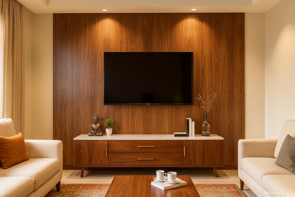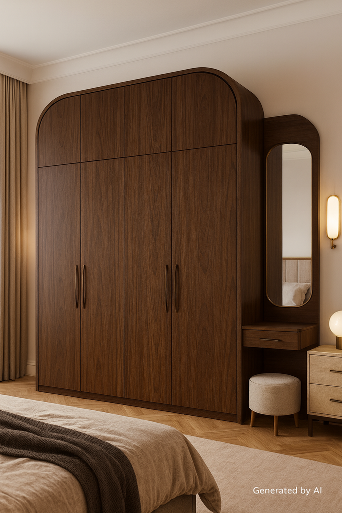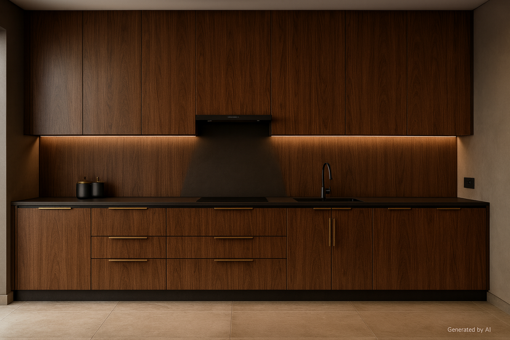 Dark Walnut Laminate applied on plywood using adhesive including cutting, pasting and finishing work ensuring neat alignment and durable interior surface installation.. |