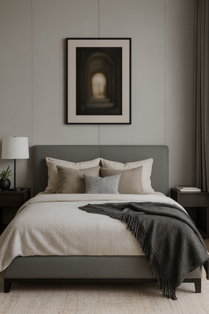 Even grey surface with faint gradient shifts, calm and elegant with no heavy patterning. |