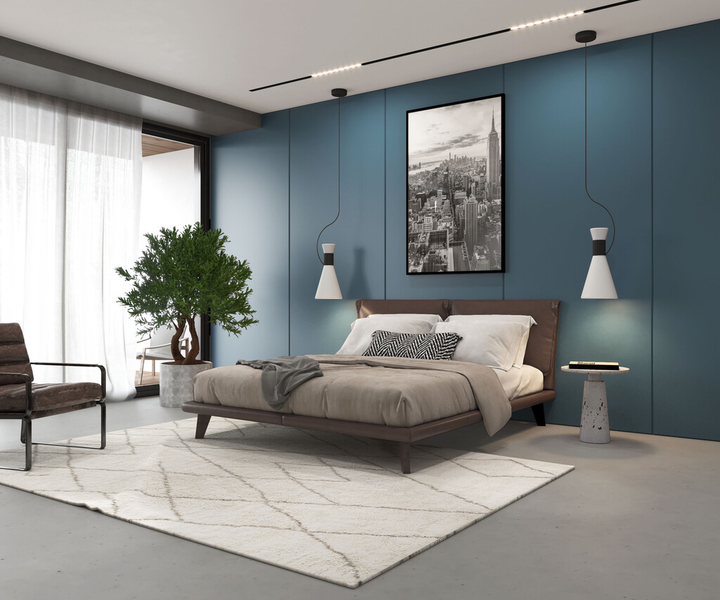 Adds depth and sophistication to interiors, offering a modern, calming atmosphere. Works well with whites, greys, light ash wood, and metallic details. |