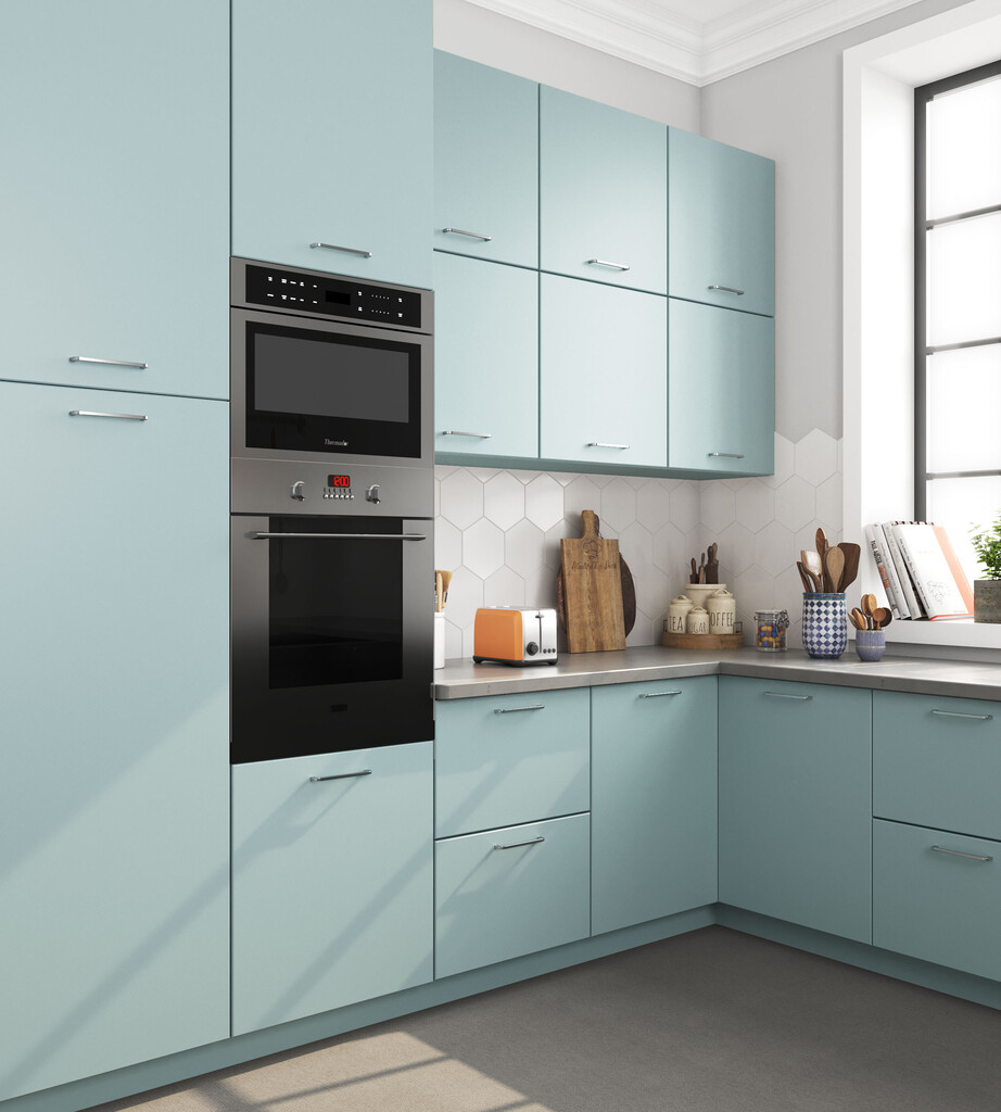 Refresh your interiors with Sky Mist Blue Thermolam - a calming pastel blue matte finish sheet. |