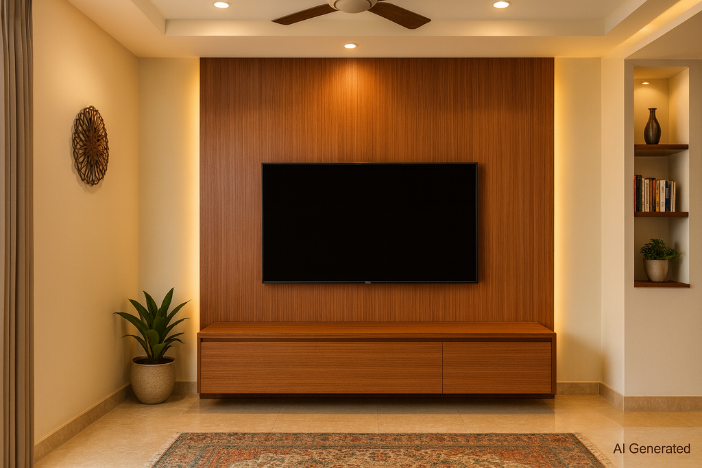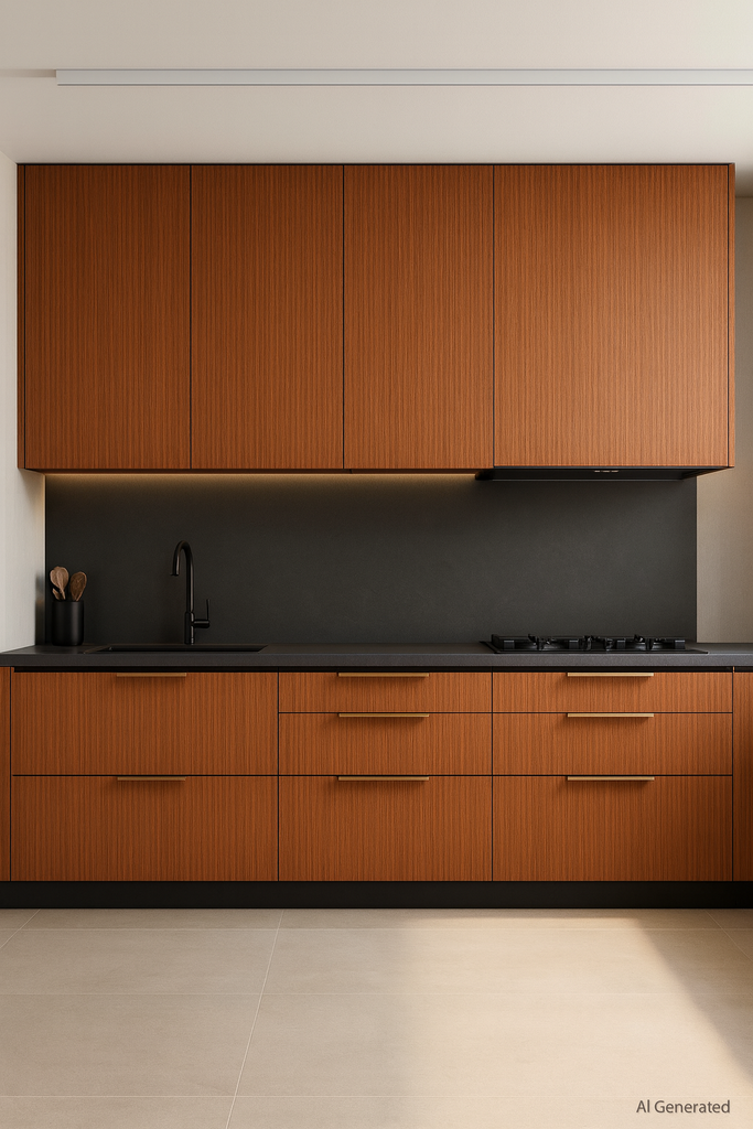 Combine Warm Teak Linear Wood Laminate Sheet with off-white, beige, or dark walnut for balanced modern designs. |