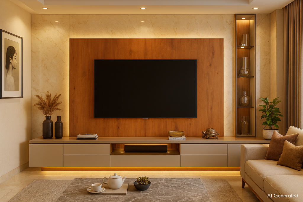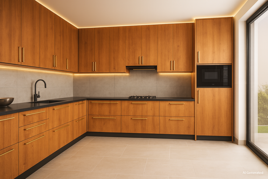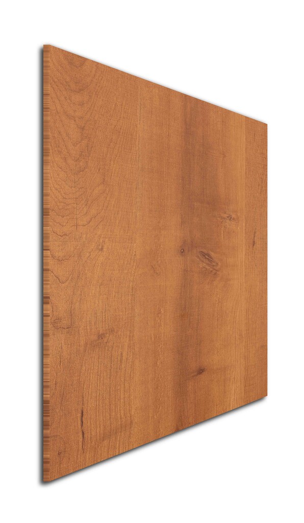 Warm Honey Teak - A natural honey-brown laminate with warm undertones, designed for cozy yet premium interiors. |