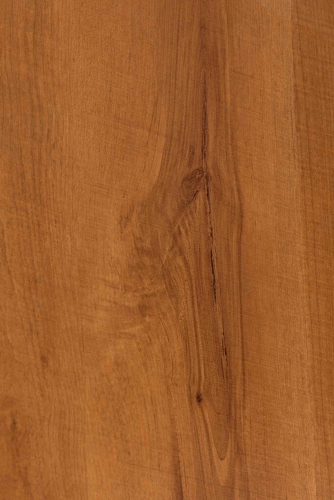 Warm Honey Teak - A honey brown teak laminate with natural grains and knots, perfect for cozy yet premium interiors. |