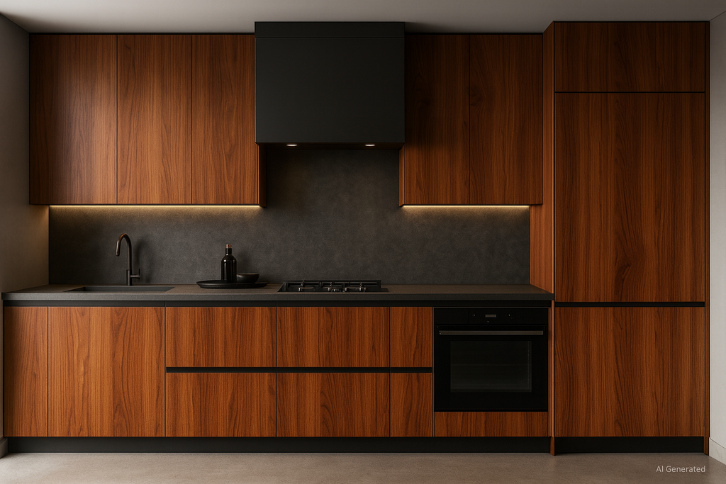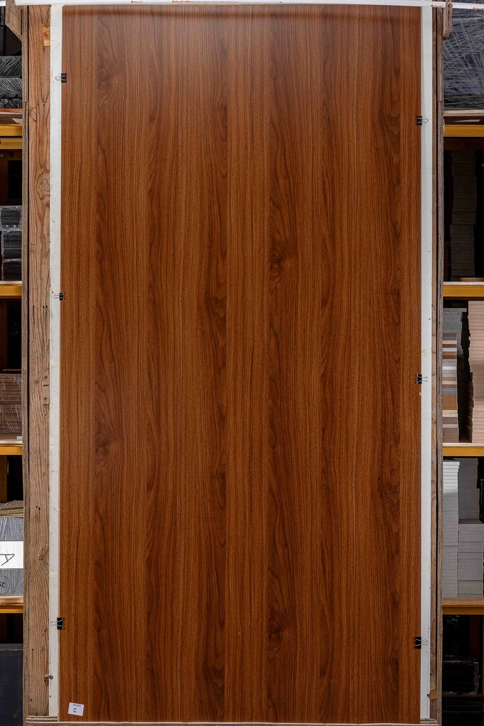 Rich Walnut Teak - A luxurious reddish-brown laminate with bold walnut-teak grains, ideal for wardrobes, offices, and premium interiors. |