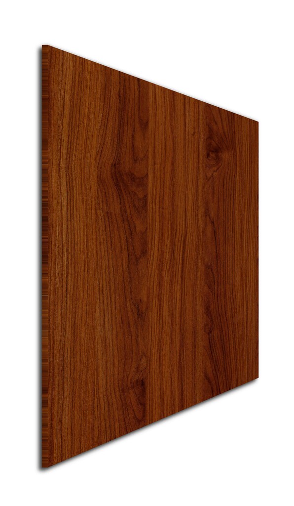 walnut laminate, reddish-brown wood finish, teak inspired |