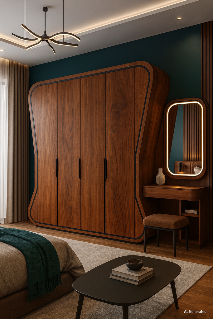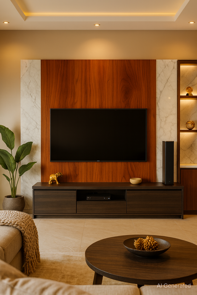 Pair Rich Walnut Teak Laminate Sheet with lighter neutrals (White or Soft Beige) for contrast or with dark greys for modern luxury. |