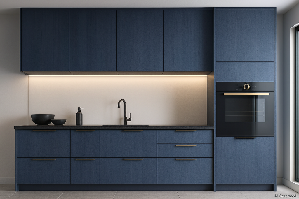 Midnight Blue Grey - A bold, elegant matte laminate for feature-rich modern interiors. |
