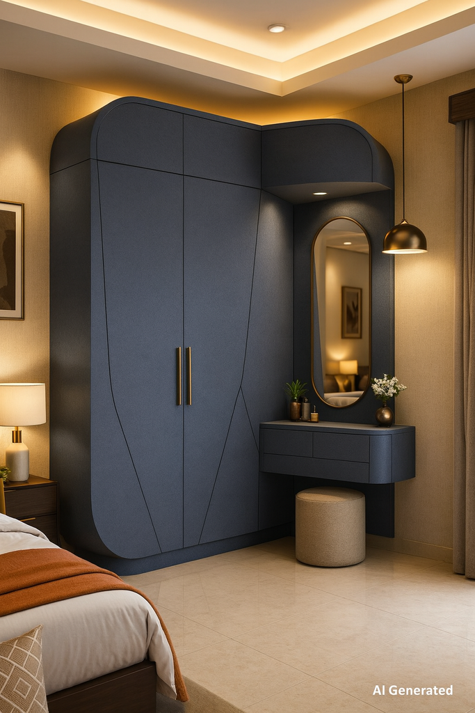 Midnight Blue Grey Laminate applied on plywood using adhesive including cutting, pasting and finishing work ensuring neat alignment and durable interior surface installation.. |