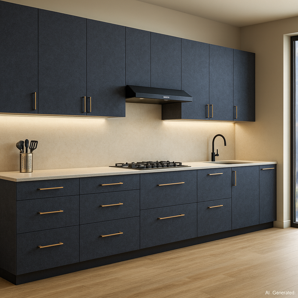 | BOQ Paragraph: | Midnight Slate Laminate Sheet on plywood, including surface preparation, PU adhesive, matching 1mm edge banding, precision trimming and finishing. Suitable for wardrobes, wall panels, counters and cabinetry. Rate includes consumables, screws, wastage allowance, protection, touch-ups,. |