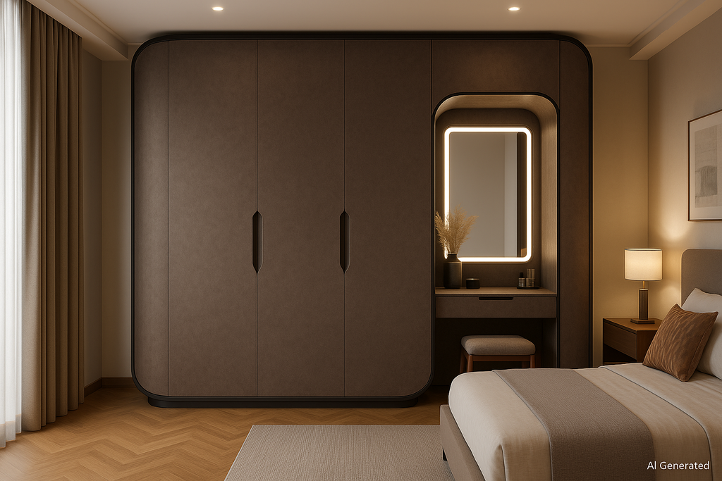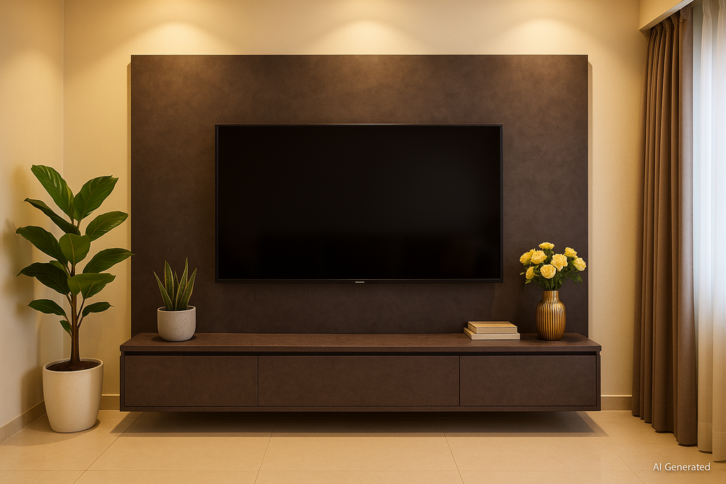 Rust Terra Stone Laminate applied on plywood using adhesive including cutting, pasting and finishing work ensuring neat alignment and durable interior surface installation.. |