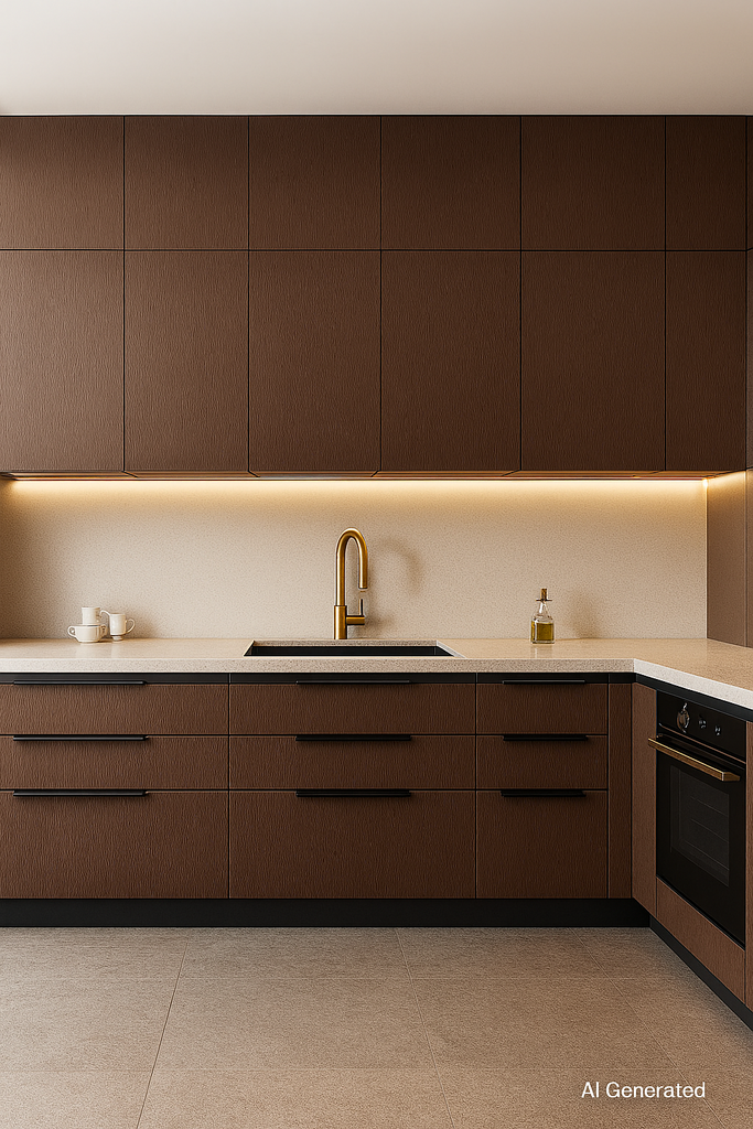 Cocoa Leather Grain - A premium leather-textured laminate for rich and elegant interiors. |