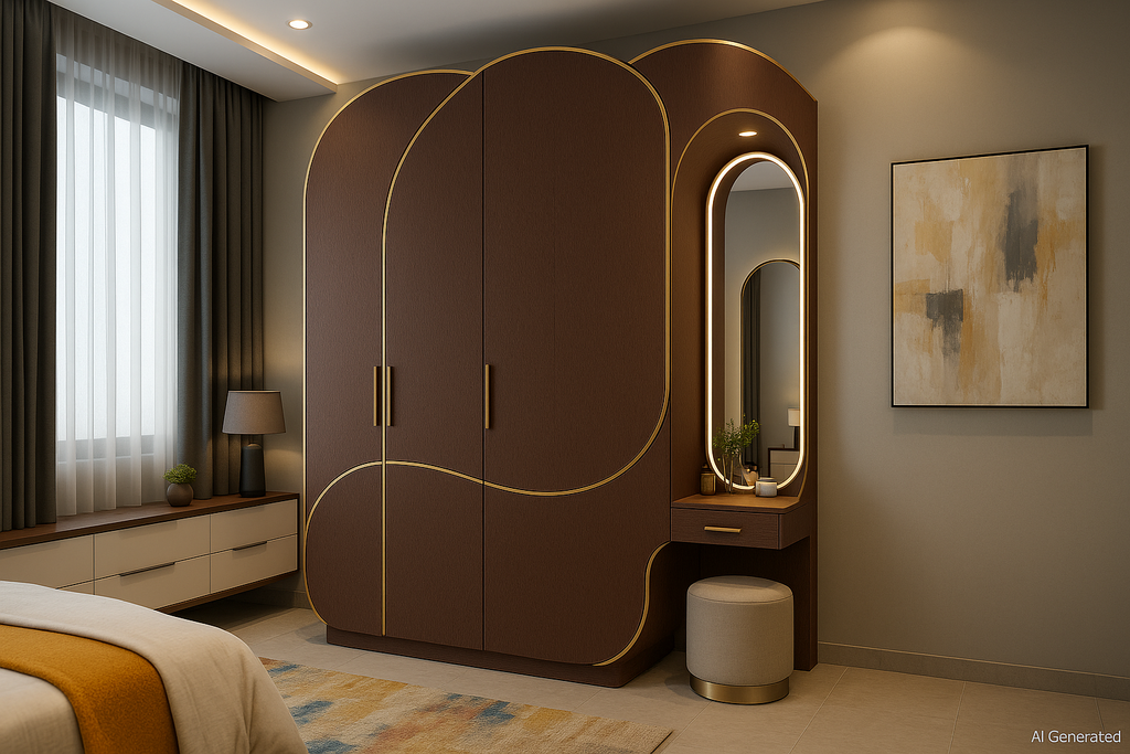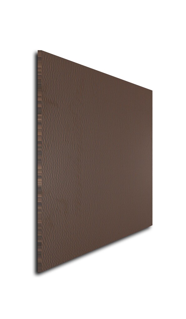 Leather-like tactile ridges in cocoa tones add depth, luxury, and natural warmth. |