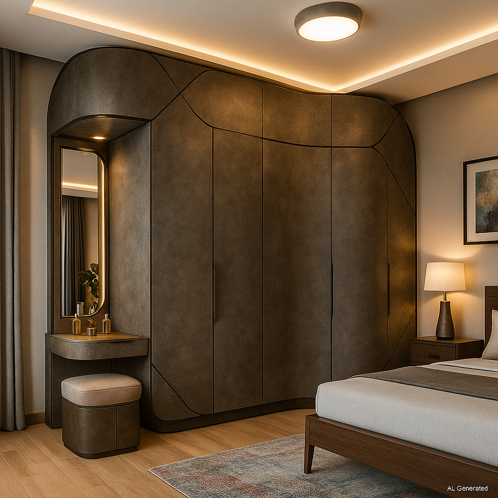 Use Earth Brown Textured Laminate for wall panels and wardrobes to achieve a natural, earthy, and timeless appeal. |