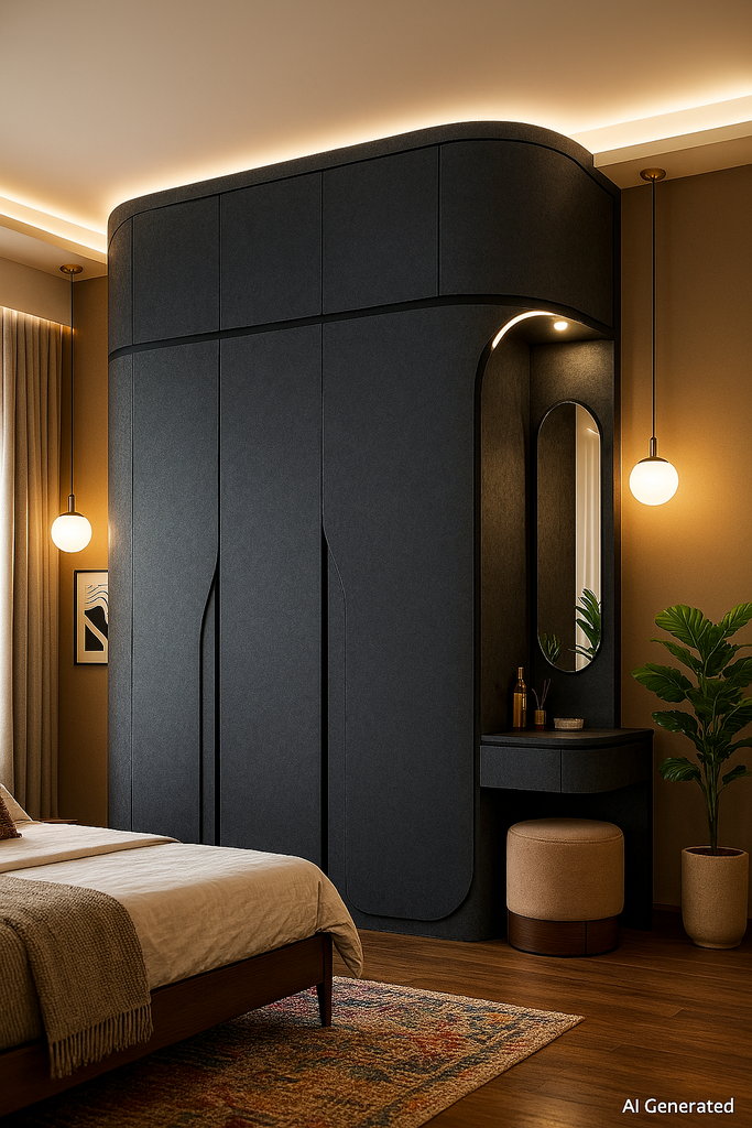 Use Charcoal Grey Stone Laminate for wardrobes, wall panels, and kitchen shutters to achieve a modern industrial vibe. |