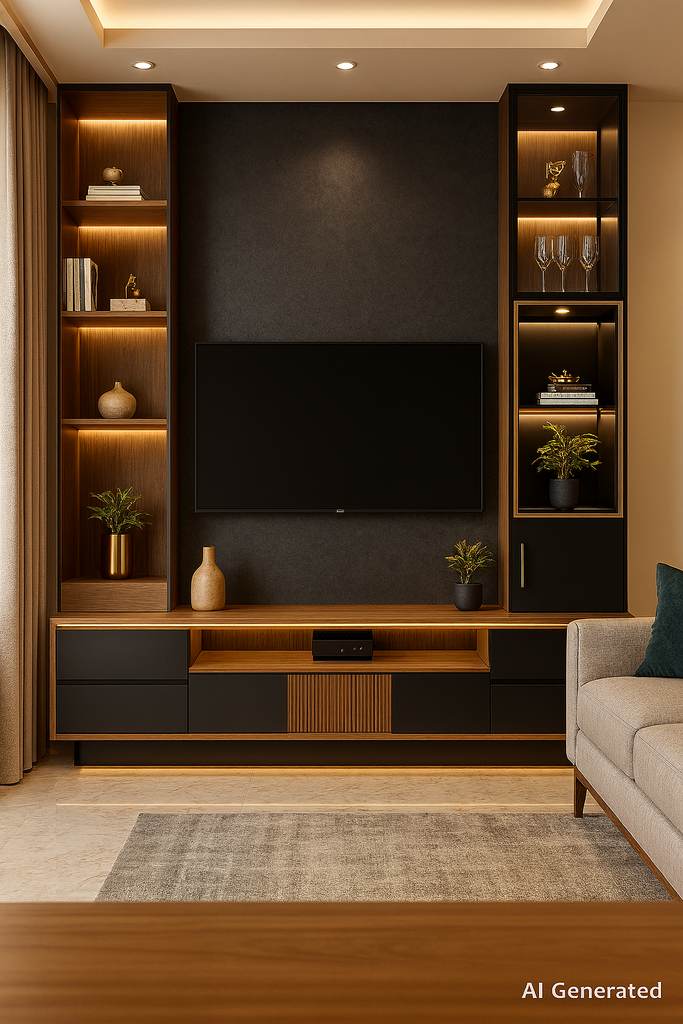 Charcoal Grey Stone Laminate applied on plywood using adhesive including cutting, pasting and finishing work ensuring neat alignment and durable interior surface installation.. |