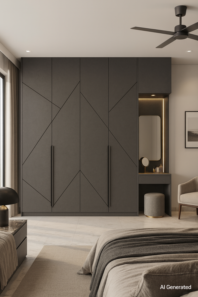 Deep Ash Grey Laminate applied on plywood using adhesive including cutting, pasting and finishing work ensuring neat alignment and durable interior surface installation.. |