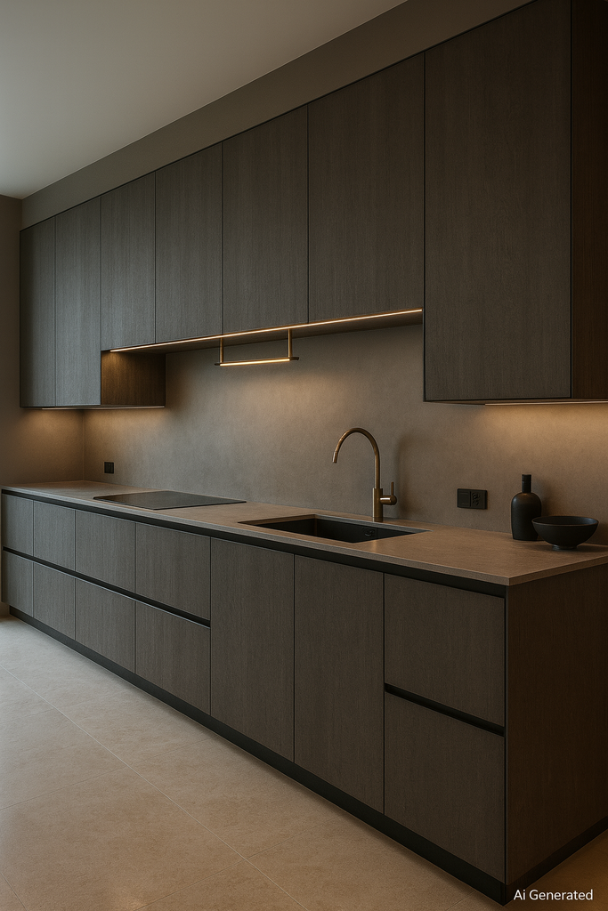 Adds strength and minimalism to interiors. Works as a grounding base surface while pairing beautifully with marbles, wood textures, and lighter laminates. |