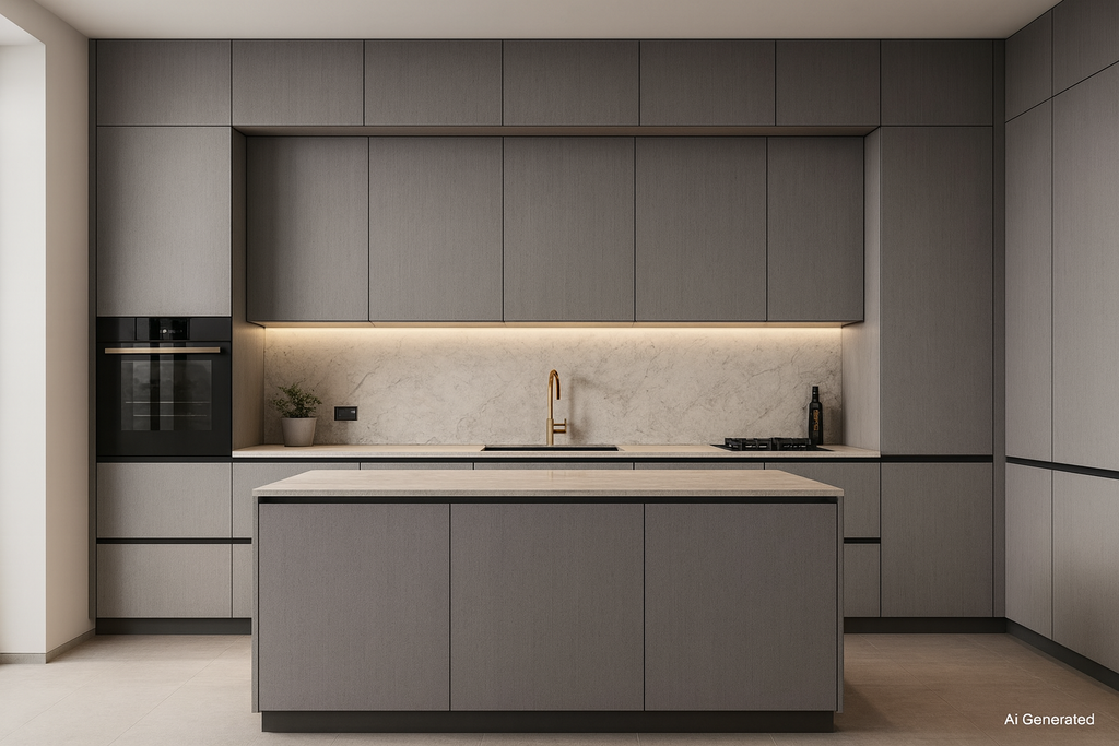 Dove Grey Matte Laminate applied on plywood using adhesive including cutting, pasting and finishing work ensuring neat alignment and durable interior surface installation.. |