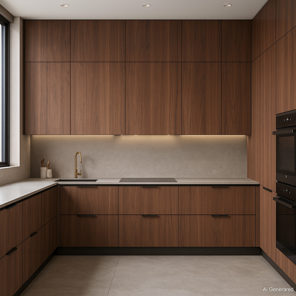 Walnut Ember Brown - A deep, warm walnut laminate that enhances modern interiors with timeless class. |