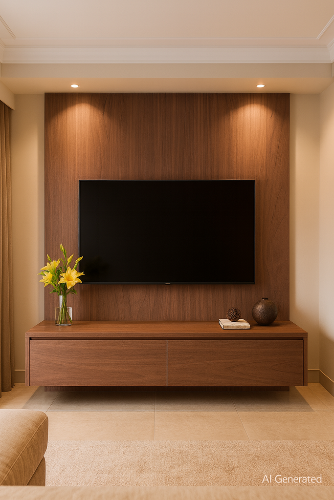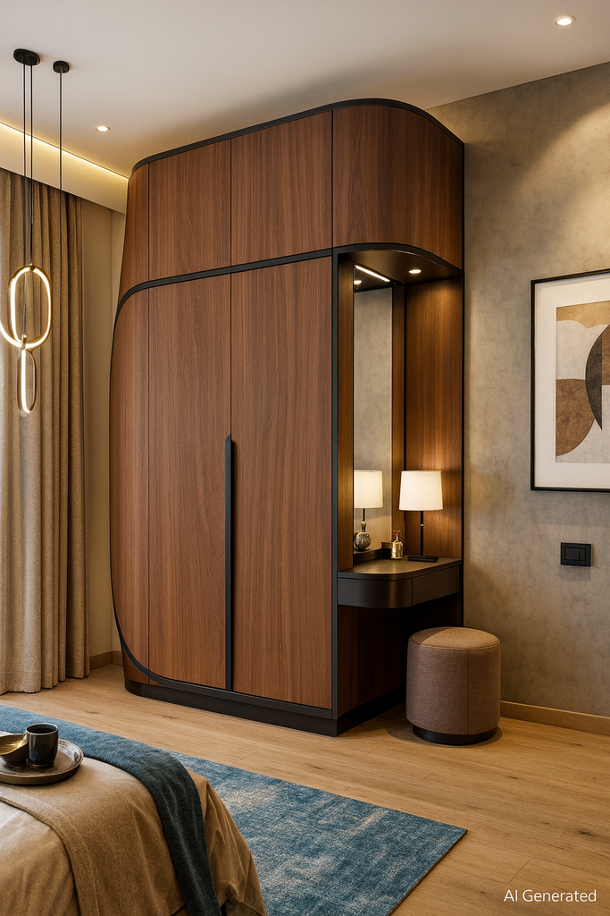 Walnut Ember Brown Laminate on plywood, including surface preparation, PU adhesive, matching 1mm edge banding, precision trimming and finishing. Suitable for wardrobes, wall panels, study desks and cabinetry. Rate includes consumables, screws, wastage allowance, protection,. |