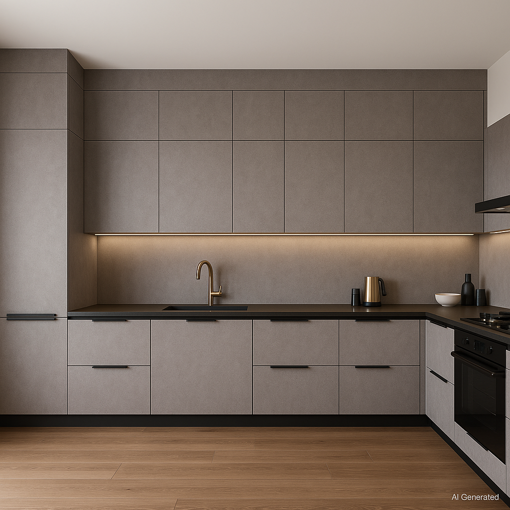 Cement Loft Grey Laminate applied on plywood using adhesive including cutting, pasting and finishing work ensuring neat alignment and durable interior surface installation.. |