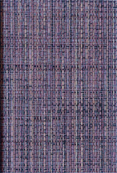 Subtle speck distribution over a fine woven grid that adds movement and visual softness to the cool grey tone |